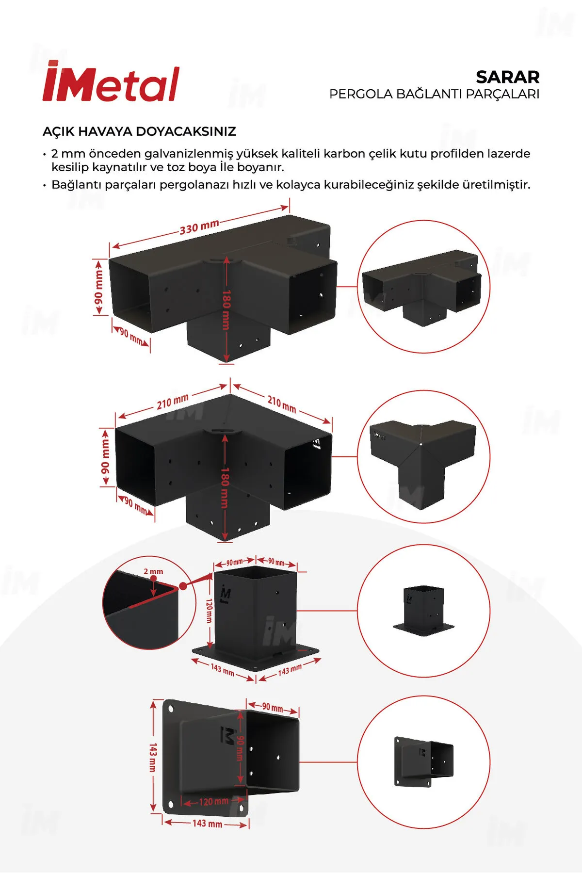 İmetal Sarar Bağlantı Setleri İle:Anopi, Pergola, Sundurma, Çardak Gibi Doğaya Yakın En Güzel Alanlarınızı Kolayca Oluşturabilirsiniz.
