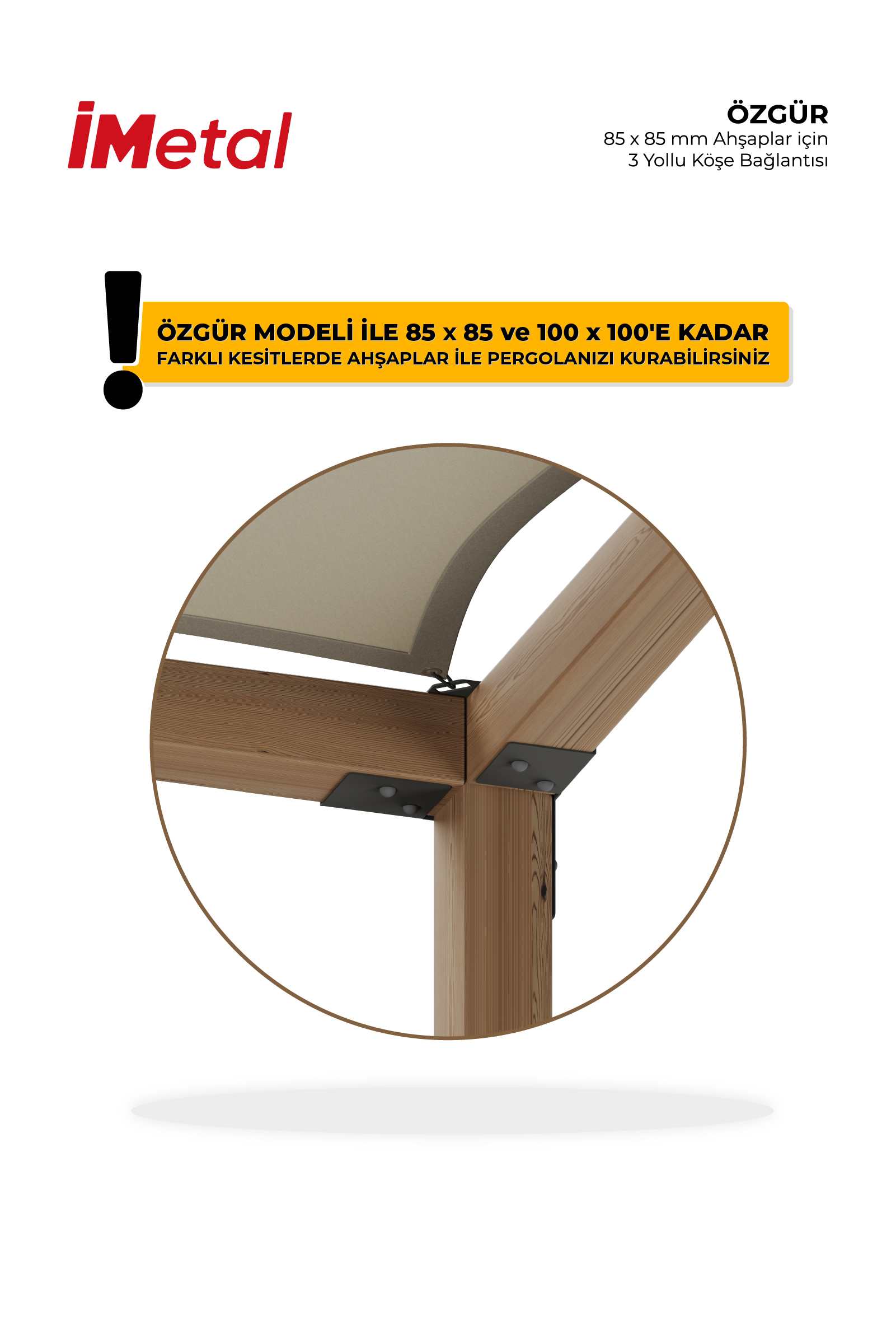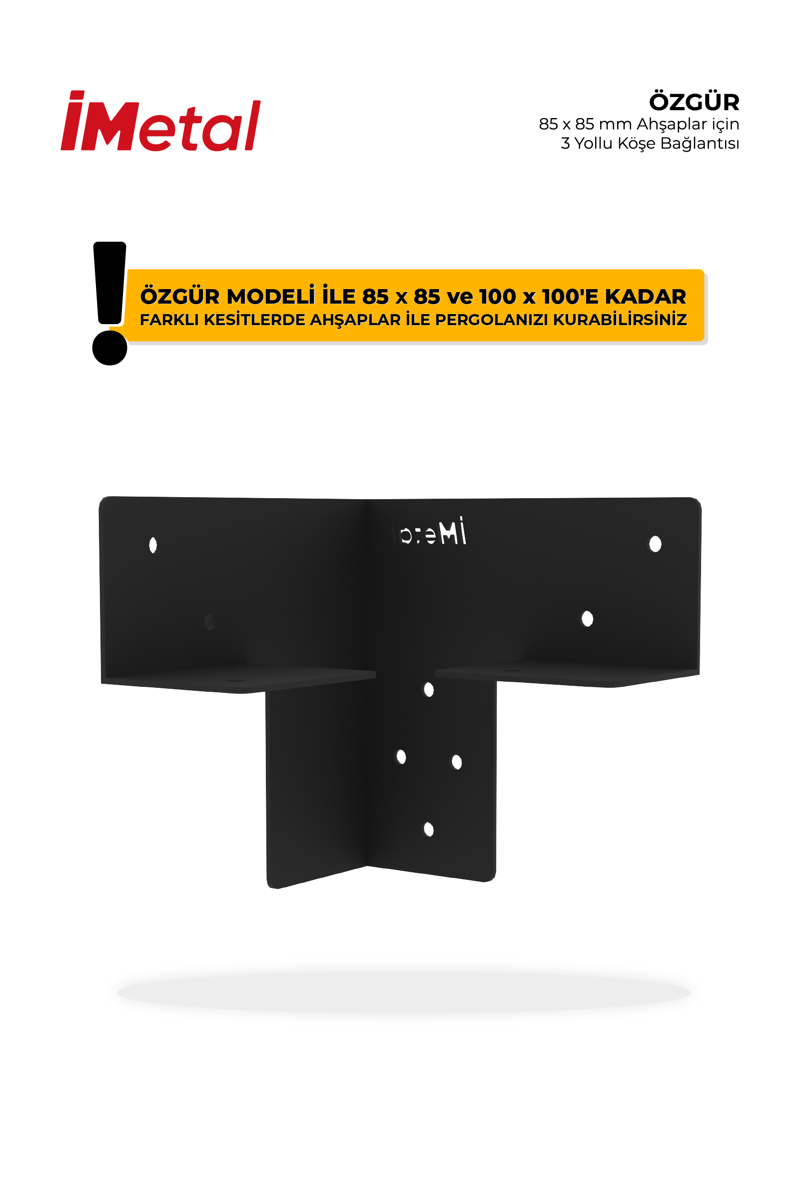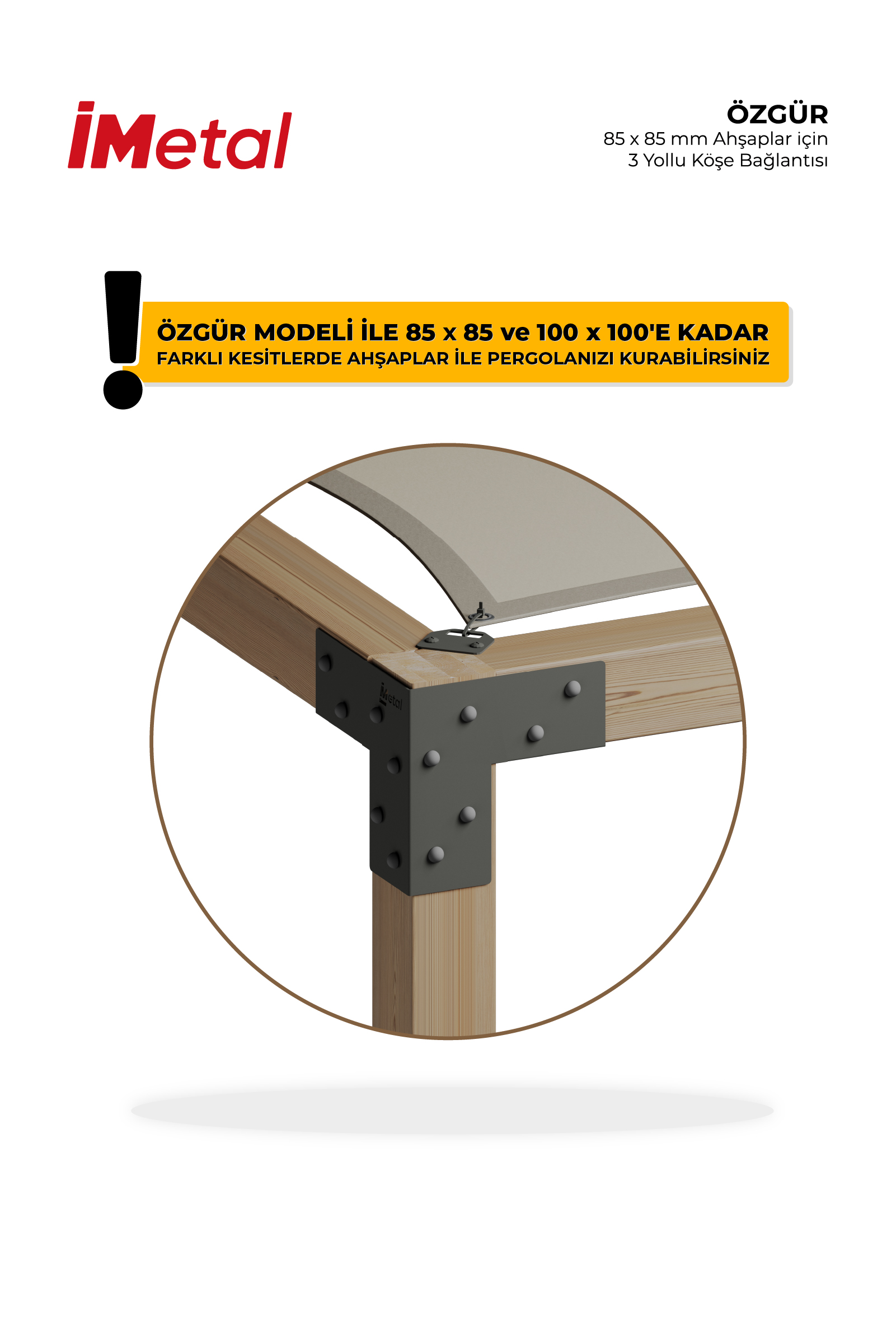 İMetal Özgür 3 Yollu Köşe Bağlantı Braketi 85x85'den 100x100 mm'ye Kadar Kesitli Ahşaplar İçin