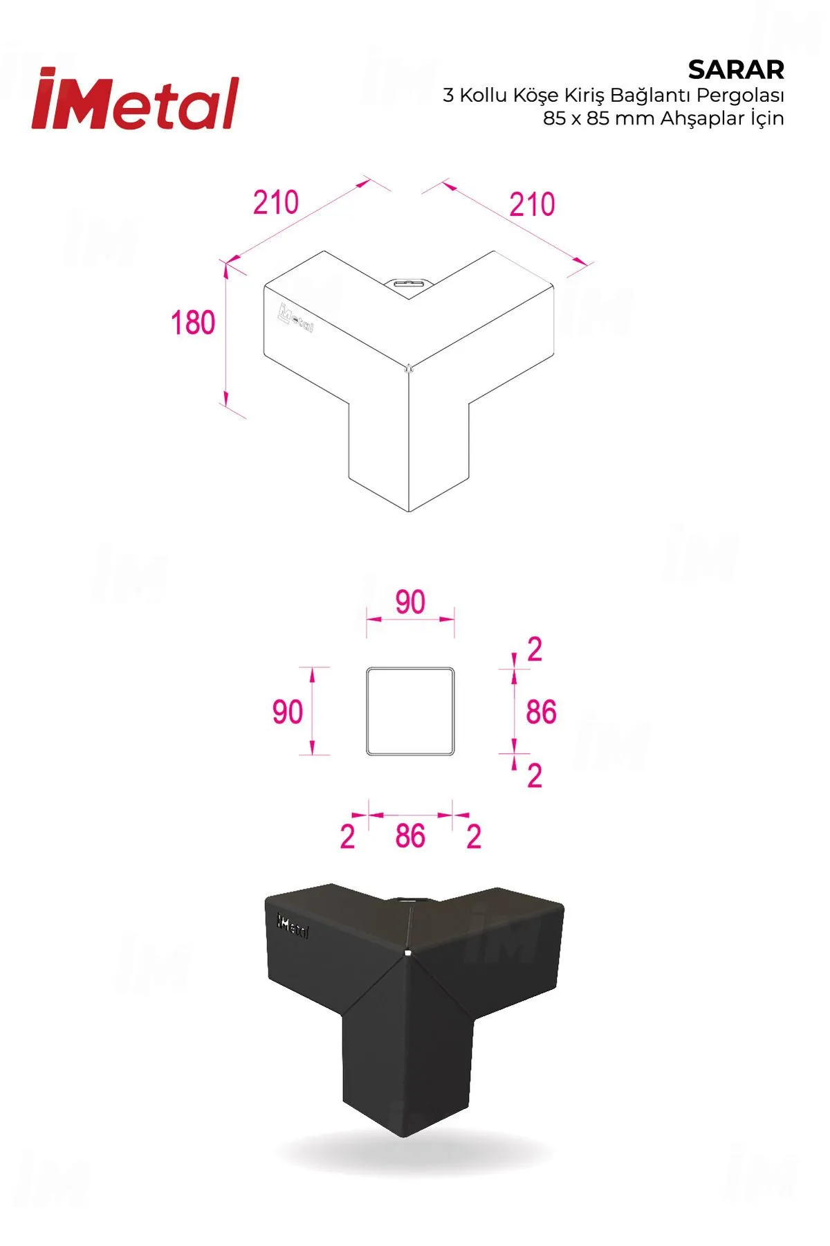 İMetal Sarar 3 Yollu Köşe Bağlantı Braketi 90x90 mm Kereste için